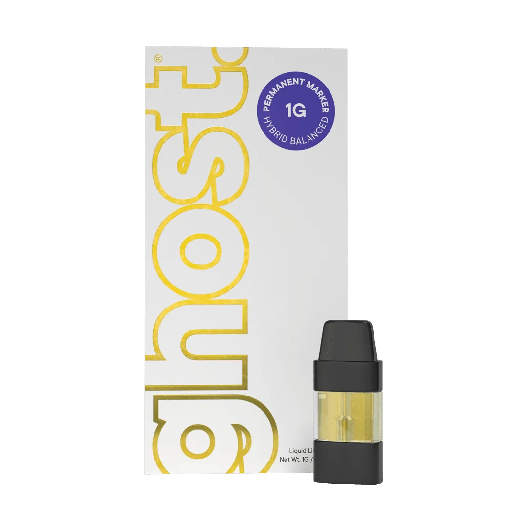 Permanent Marker Ghost Live Resin Pod is a hybrid strain that combines Biscotti and Jealousy. It is known to be a potent strain that has a floral and gassy funk smell. This strain has a pungent, gassy funk flavor that lingers with hints of floral and candy. It is known for its relaxing effects that can bring out creativity.